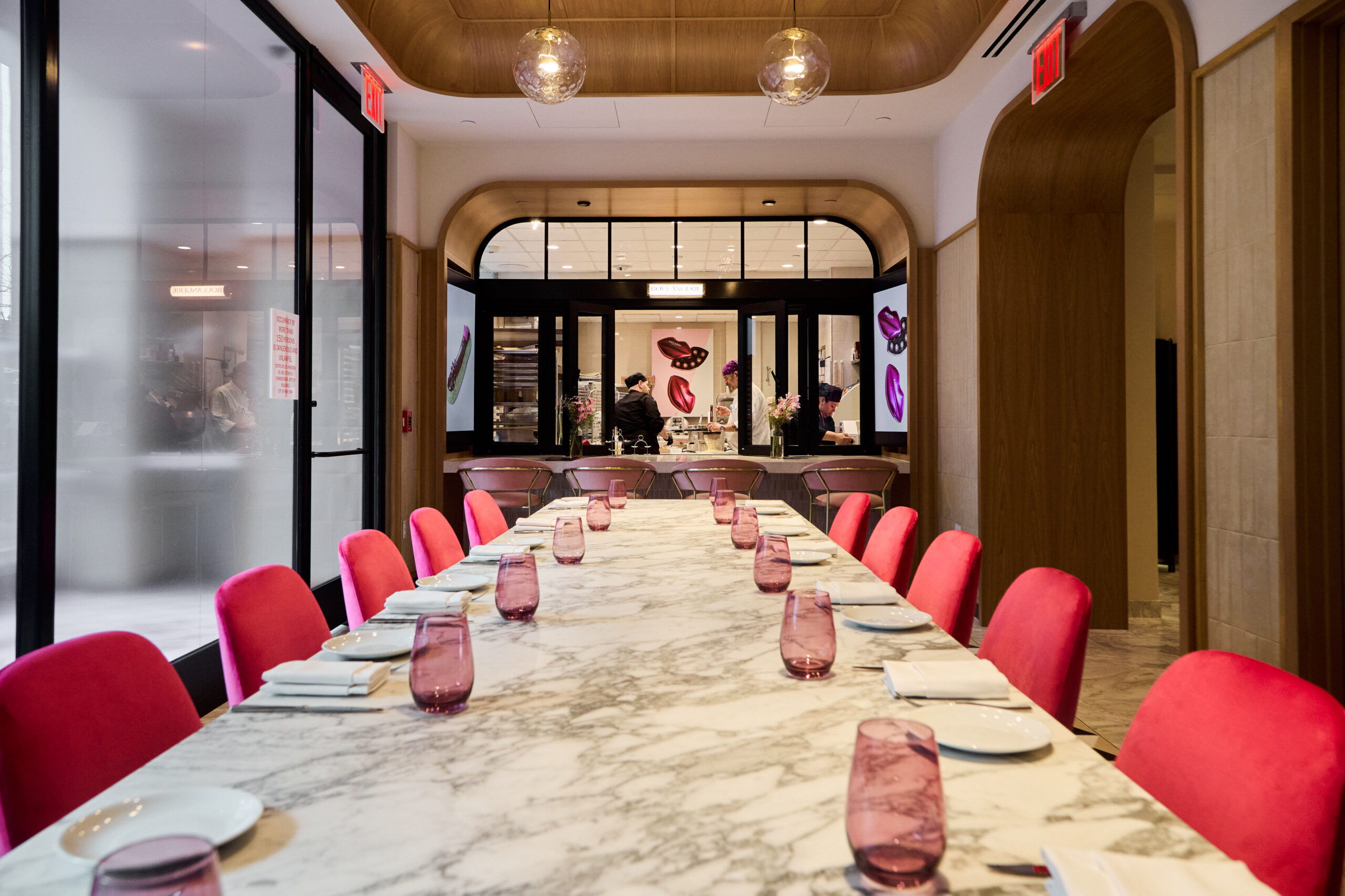 Construction included two commercial kitchens with recirculating hood systems, significant structural and MEP upgrades, and extensive coordination within the occupied tower. Architectural finishes such as stone mosaic flooring, decorative glass, and custom millwork were carefully installed throughout, creating an elegant café and retail destination inspired by the brand’s Paris flagship.